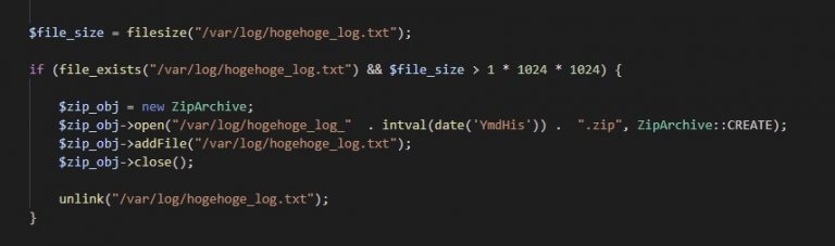 $zip_obj->addFile(“/var/log/hogehoge_log.txt”);