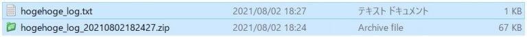 1MBの容量を超えるよう適当にログにテキストを入力、保存しテストした結果、以下のようになりました。