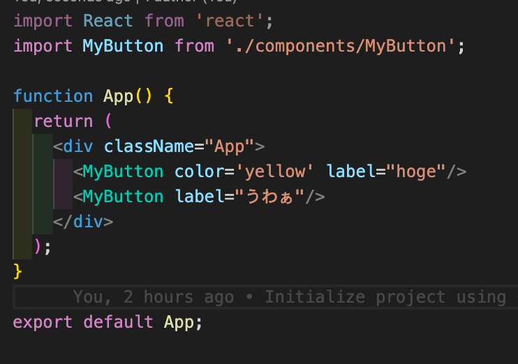 プロパティ(MyButtonProps)にlabel、colorを設定しています。