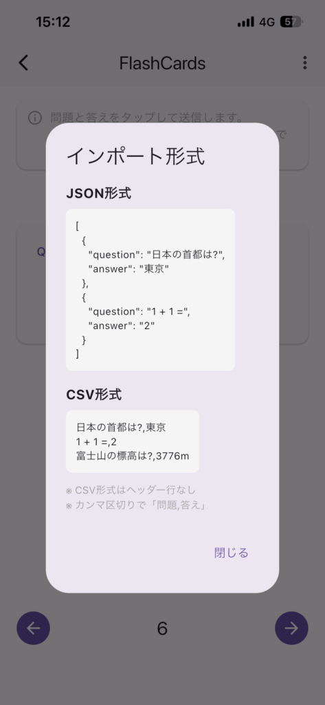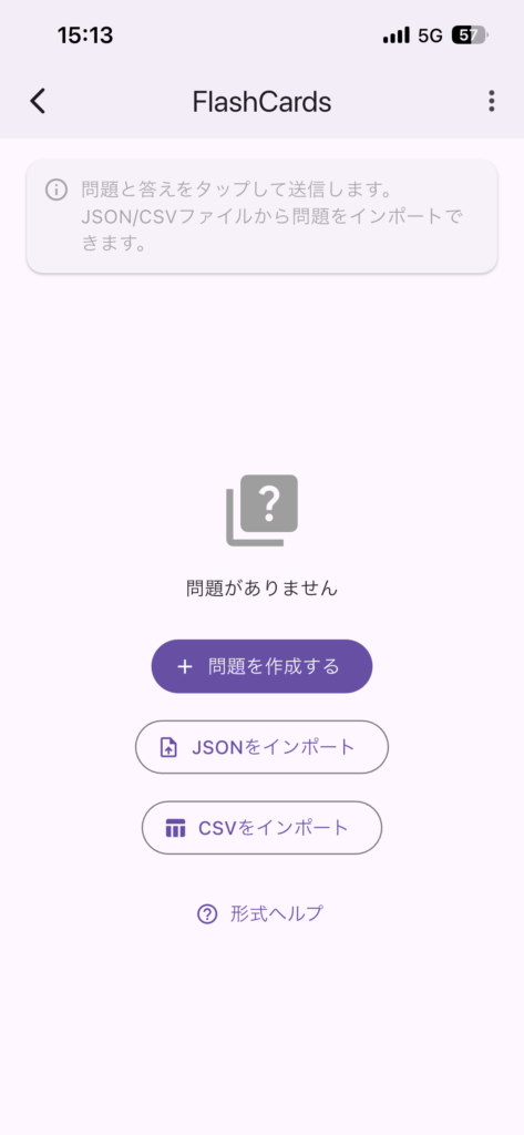 スマホで問題を追加していく事も出来ますが、ファイルから一度に読み込む事も出来ます。