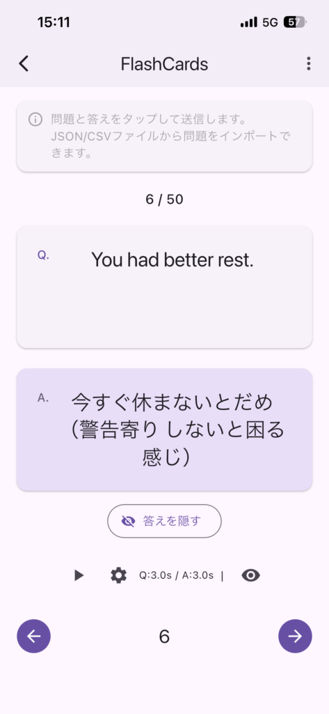 - 自動再生機能(問題と答えの表示時間をそれぞれ時間設定可能)