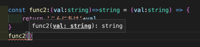 func2を型定義した後にfunc2を使おうとすると、引数に何の型を入れるべきなのか表示してくれます!