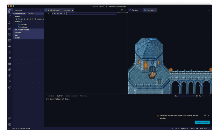 「vscode-pets」VSCode内でペットが飼えるプラグインだにゃ!!